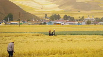 作品以青海门源的秋季风景为主题,捕捉了高原上独特的自然与人文之美。 门源的秋天,是一幅由金黄、碧蓝、赭红交织而成的油画,远处的祁连山脉连绵起伏,山脚下彩色的村庄点缀其间,金黄的青稞田在阳光下熠熠生辉,劳作的人们与农耕机器共同构成了一幅生动的丰收画卷。 门源的秋天,是大自然与人类共同创作的杰作,这组作品不仅是对高原风光的记录,更是对劳动与丰收的礼赞。希望通过这张照片,能让更多人感受到门源的独特魅力,以及这片土地上生生不息的生命力。