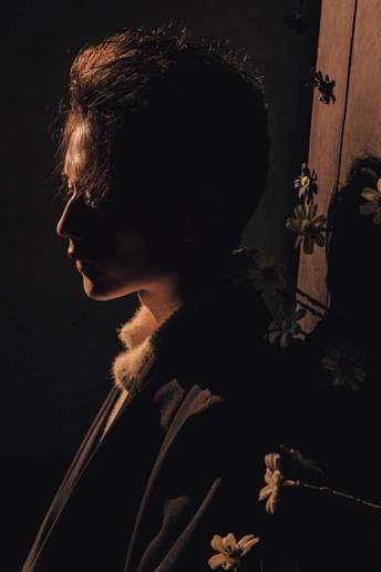 暖光沉在暗里,只照亮半张侧脸,像时光沉下来的温度。人物的侧影是光的容器,身后的小花是光的碎片,木质墙面是光的底色 —— 所有元素都在 “沉” 的状态里,慢下来、静下来,让情绪在光影的缝隙里沉淀。这张照片没有故事,只有沉光里的、无需言说的温柔与克制。