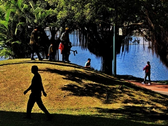 大榕树撑开浓荫,把湖畔的午后剪切成斑驳的光影。 有人步履匆匆,有人推着童车漫步,有人静坐看水,有人在跑道上挥汗——不同的节奏,在同一片绿荫里汇成城市最真实的呼吸。