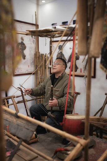 朱国强作为望城皮影的第五代传人,一直坚持传播皮影文化,这次去到朱老师的皮影博物馆,拍摄这个登上过联合国的非遗技艺,也是寻找我儿时对皮影戏的记忆。 皮影艺人“吹拉弹唱”样样精通,他的儿子也继承了他的衣钵,继续在靖港古镇的皮影博物馆传播望城皮影文化。 人老矣,皮影依旧。