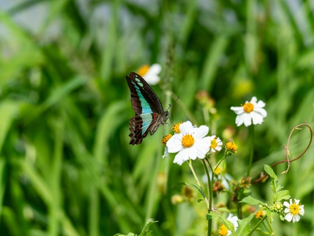 青凤蝶(学名:Graphium sarpedon),又称樟青凤蝶、青带樟凤蝶、蓝带青凤蝶,是凤蝶科青凤蝶属的一种中大型蝴蝶。该物种广泛分布于东洋界和澳洲界,在中国主要见于秦岭以南的广大地区。青凤蝶以其修长的翅膀和翅面上贯穿前后的青蓝色斑纹为主要特征,后翅外缘还饰有一列新月形的绿蓝色斑纹,因其翅膀上的青色条带而得名。