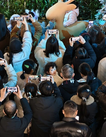 人群举起手机,将目光与镜头一同对准前方的美好瞬间。无数屏幕闪烁,在热闹的簇拥里,每个人都成了生活的记录者,用镜头收藏这份鲜活的烟火气,把短暂的欢喜定格成永恒的记忆。