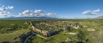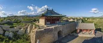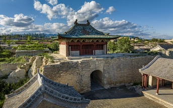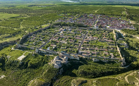 当阳光如碎金般洒落,开阳古堡便从绿野的怀抱中苏醒。蓝天为幕,云絮似棉,远山如黛横亘天际,脚下是一方被岁月温柔以待的天地。古堡的夯土城墙蜿蜒如龙,将红瓦灰墙的村落拥入怀中,每一块砖石都镌刻着时光的掌纹,每一缕炊烟都诉说着人间的烟火。 绿野漫过坡地,与古堡的沧桑撞个满怀。田埂如琴键,风抚过便奏响生机;老屋错落,树影婆娑,在光影里织就静谧的网。城楼巍峨,台阶斑驳,仿佛仍能听见马蹄踏过的回响,看见古商道的繁华过往。远处的水泽波光潋滟,与近处的绿意相映成画,时光在这里慢成了诗行,每一处角落都藏着岁月的留白。 站在高处俯瞰,古堡是大地的一枚印章,盖在阳原的锦缎之上。阳光倾泻,云影游移,绿野托举着古堡,古堡守望绿野,天地间流淌着千年未改的从容。在这里,历史与自然相拥,喧嚣与宁静和解,每一眼都是时光的馈赠,每一步都踩着岁月的韵脚。