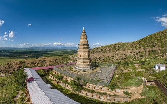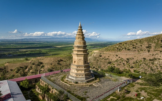 夏日午后五点的光,像一层薄金,温柔地覆在澍鹫寺塔的砖纹上。这座伫立在阳原山腰的古塔,八角八级,层层收束,如一位沉默的老者,将唐辽的风烟、宋清的霜雪,都揉进了风化的肌理里。 塔座的仰莲纹仍清晰可辨,仿佛还托着千年前的梵音;壶门与力士像的刻痕里,藏着工匠指尖的温度。寺宇早已湮没在岁月里,唯有这塔,守着眼前的平川绿野,看云卷云舒,听风过林梢。 远处的桑干河谷铺展成绿绸,田畴阡陌间,村落星点,远山如黛。夏风漫过塔檐,带着草木的清香,将时光拉得悠长。此刻,没有喧嚣,只有古塔与天地的对话,只有光影在砖墙上缓缓流淌,诉说着一段被遗忘却从未消散的过往。