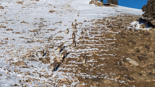 在祁连山腹地近距离拍摄岩羊