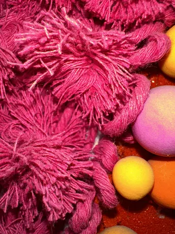 这组微距特写捕捉了生活织物与材质的微观肌理:交织的毛线、金属的闪片、釉面的冷冽,皆是日常被忽略的细碎美好。