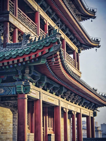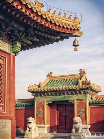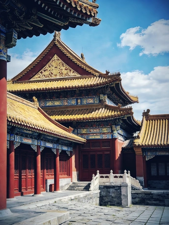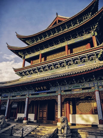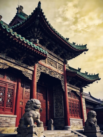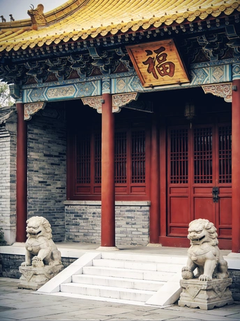 以数字笔触重构东方古韵,用AI技术复刻中式建筑的千年风骨。 红墙金瓦、飞檐斗拱、石狮朱门,在虚拟光影中还原古建的威严与雅致,让传统美学跨越时空,于代码世界绽放独有的东方意境。