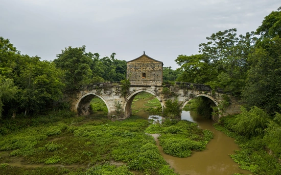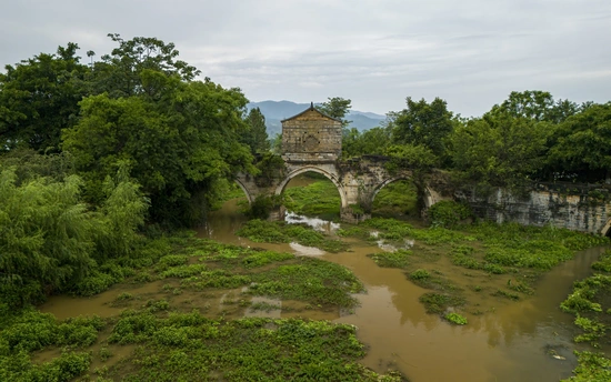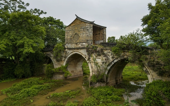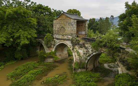 夏日的云南红河建水马家营,见龙桥静卧于碧水绿野之间,如一位沉默的古贤,守望着岁月的流转。石拱桥身斑驳,青苔与藤蔓悄然攀附,诉说着百年的风雨沧桑。桥中央那座古朴的石亭,飞檐微翘,似在低语旧日商旅的喧嚣与农耕的安宁。桥下溪流浑浊而温润,水面上浮满翠绿的水生植物,如大地铺展的绒毯,随波轻漾,映着天空灰白的云絮。两岸浓荫蔽日,垂柳依依,与远处朦胧的青山相接,构成一幅水墨氤氲的田园长卷。蝉鸣在树梢低回,风穿过桥洞,带来草木的清香与泥土的湿润。这里没有都市的喧嚣,只有自然与人文的温柔对话。见龙桥不单是一座交通之桥,更是时光之桥——连接着过往与当下,连接着山水与人心。站在桥上,仿佛能听见历史的足音在水波中轻响,看见农人荷锄归家的身影在暮色里渐隐。夏日的见龙桥,是静谧的诗,是流动的画,是灵魂栖息的绿洲,让人忘却尘世,只愿在此小憩,听风、观水、忆古、思今。