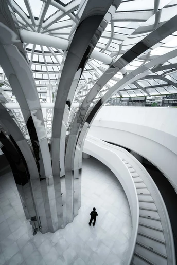 当建筑美学撞上光影与线条,再配合上融入建筑中间的行人,湾区之眼书城里面这个智慧树我给到夯爆了! 要想问深圳有什么出片的新地标,那就来“湾区之眼”吧,这里出片就像呼吸一样简单,有手就行啊! 📍拍摄机位: 深圳书城湾区之眼,北区L2的“智慧树”,由于我去的那天是阴天,不太通透,所以索性走了对比度的路线,主要突出光影与建筑结构 📸拍摄设备: 尼康z72+铭匠14mmF2.8 🚄交通: 地铁5号线【宝华站】