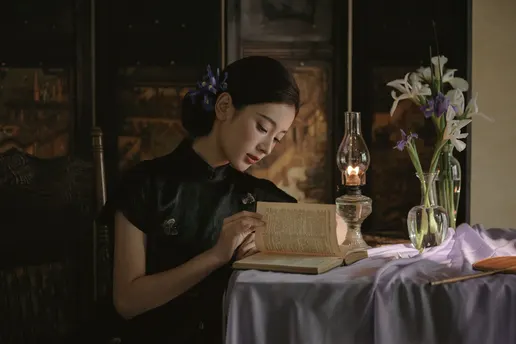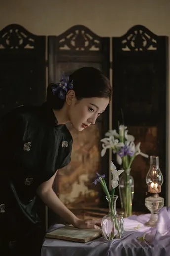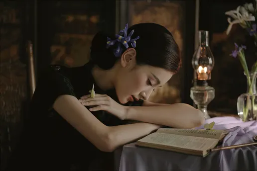在影棚搭了个小景 太喜欢这样电影感的画面了 暗暗的氛围,安静又优美