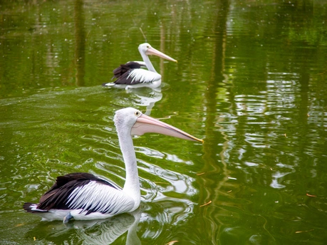 碧波上的大嘴绅士,说的就是澳洲鹈鹕!它们有着鸟类中堪称 “天花板” 的超大喉囊,一次能装下远超自身体积的食物,却依旧在水面保持着优雅姿态。黑白相间的羽衣、修长的脖颈,让它们在碧波中游弋时,自带绅士气场,是湿地里最具辨识度的灵动生灵。