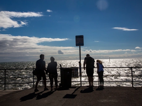 岸畔的身影静静伫立,目光漫过粼粼海面,望向海天相接的远方。风掠过发梢,浪拍打着堤岸,所有的心事都随波舒展。