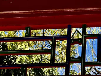 北京二环城市公园的连廊 有同事聊聊八卦 有朋友在野餐 有一家人遛弯 还有一个人晒太阳