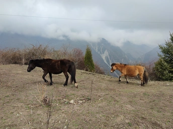 牟托寨位于岷江西岸,紧靠213国道(九环西线),汶川茂县交界处,是从汶川进入茂县后的第一座羌寨。“牟托”是羌语,“牟”在羌语中是天和太阳的意思,“托”有赐予、给予、奖赏之意,“牟托”两字合起来便是“天官赐福”之意。 牟托寨后山海拔3573米,距山顶不远处曾建有龙王庙(毁于汶川大地震)。站在山顶,东看九顶山狮子王为首的龙门山脉,西观小雪隆包,北赏雪宝顶,南有峨眉山,无限风光尽收眼底!