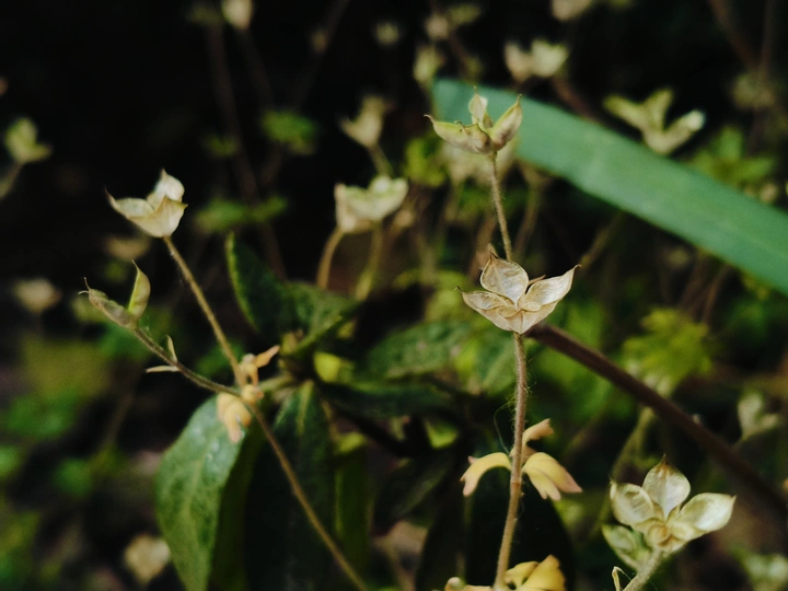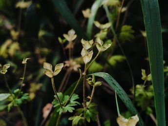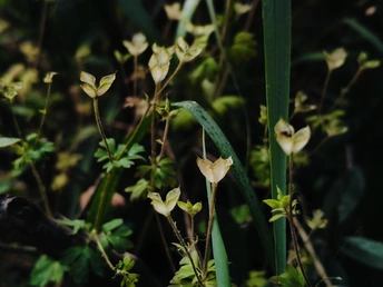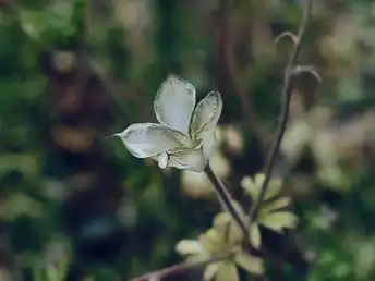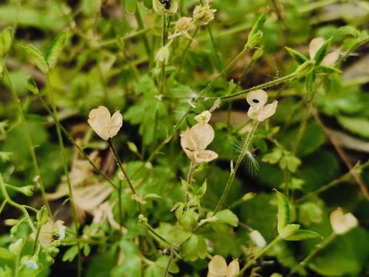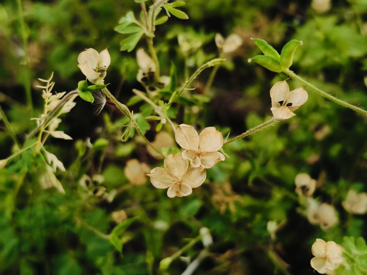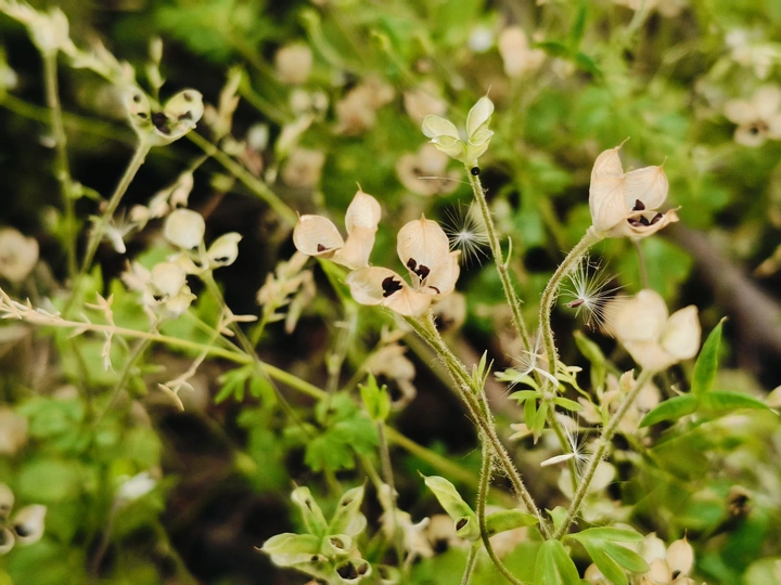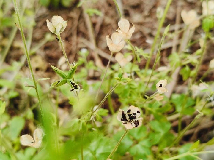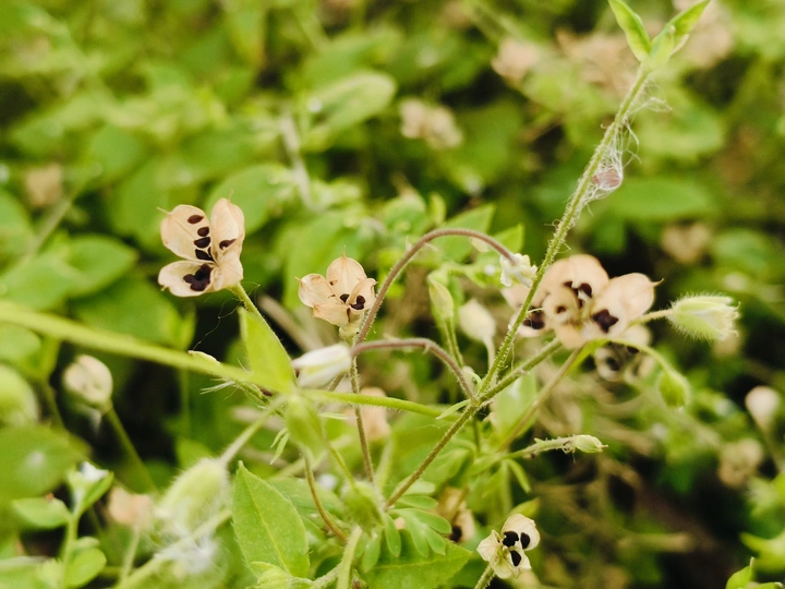 注意它是去年春天的一个早晨,晴好的阳光斜照在一片碧草上,我第一次看到草丛间开着一些肤色透明的花儿,凑近看时,原来是果壳,从看到的那一刻它才出现在我的世界里。不过今年天比较干燥,果壳花也开得瘦弱……