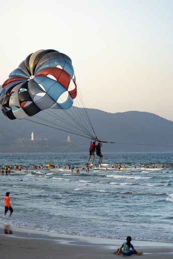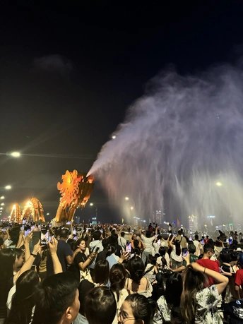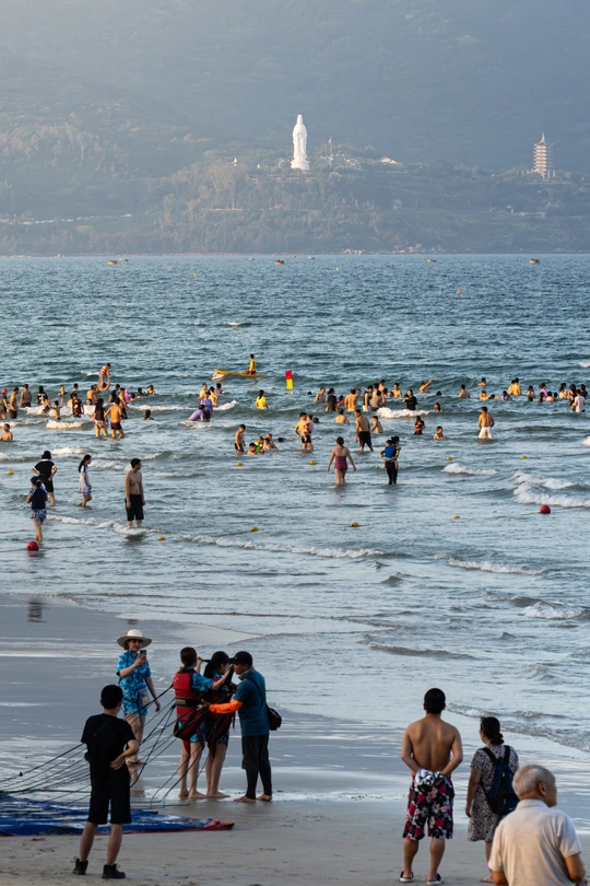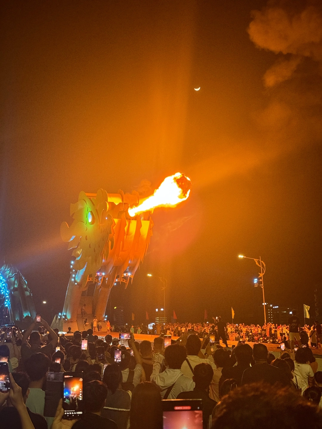 在美溪海滩共享着在海岸对面那一头海南三亚的南海,在岘港最舒服的时刻,就是凌晨在沙滩吹着清凉的海风,等待着夕阳在霞光的簇拥中破开雾霾,缓缓地海平面上升起 傍晚的海岸线和夜晚的龙桥同样有着一番风味,相比白天的酷热,傍晚的海边吸引着更多人在这嬉戏;当夜间整点的铃声响起,龙桥桥头的龙首便会准时开始吐息,火焰的炽热和漫天的水雾的奇特让我多年以后都能记起这个特别的城市