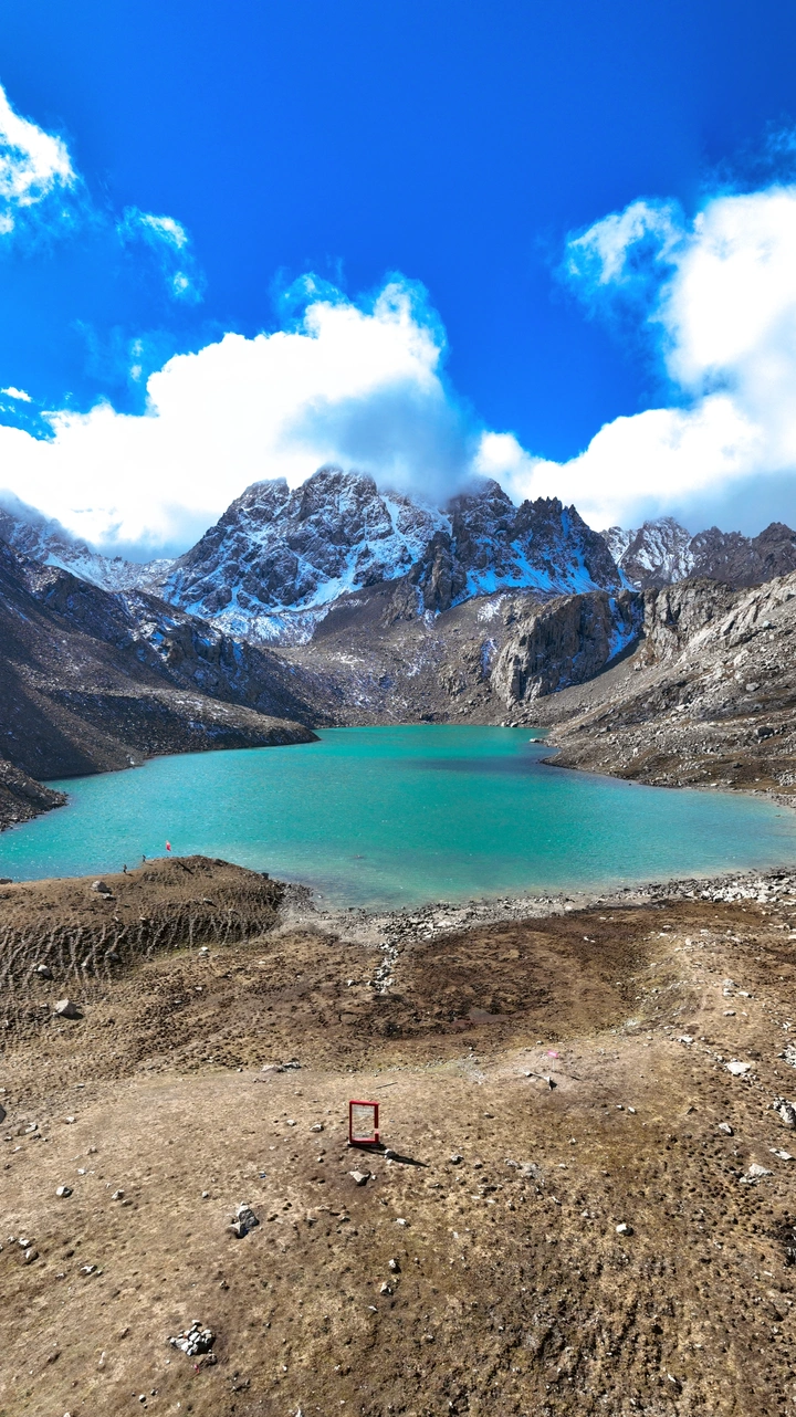 柴尔龙海位于甘肃省武威市天祝藏族自治县祁连镇,是祁连山东段海拔最高(4000 米)、水域面积最大的天然湖泊,亦被称为 “冰沟河天池” 或 “祁连天池”。它镶嵌在阿尼岗噶尔雪山环抱中,湖水清澈碧绿,倒映着雪山与蓝天,宛如一颗深邃的蓝宝石。其水源主要来自冰川融水,西北侧的冰碛垄和西南侧的现代冰川共同塑造了这一高山秘境。
