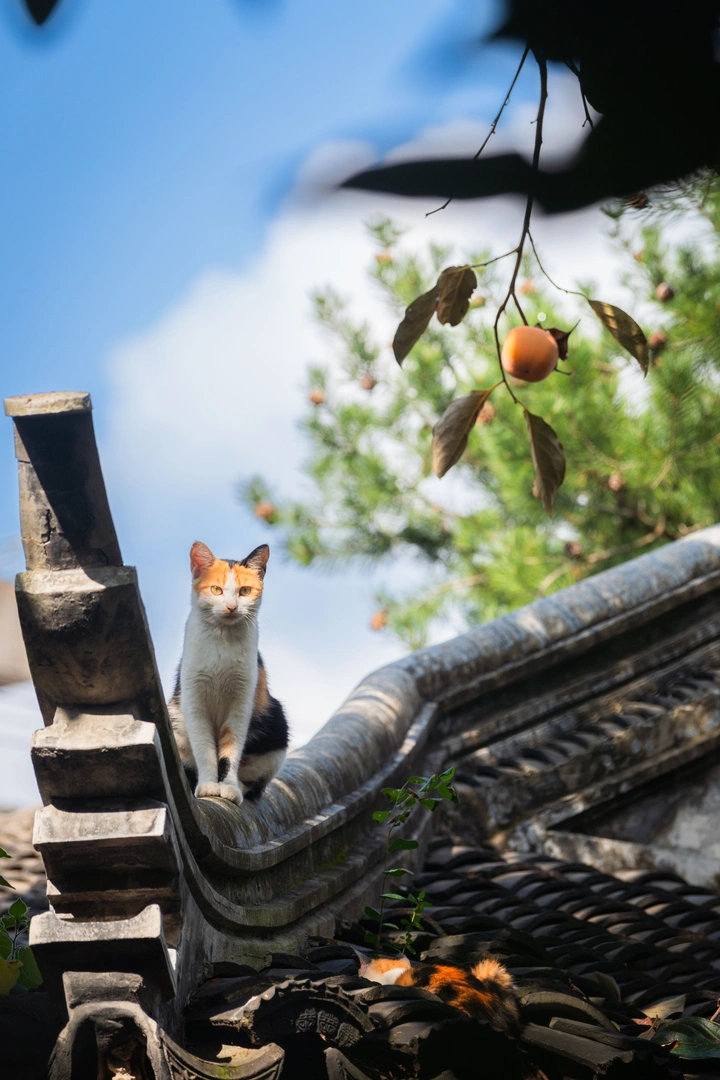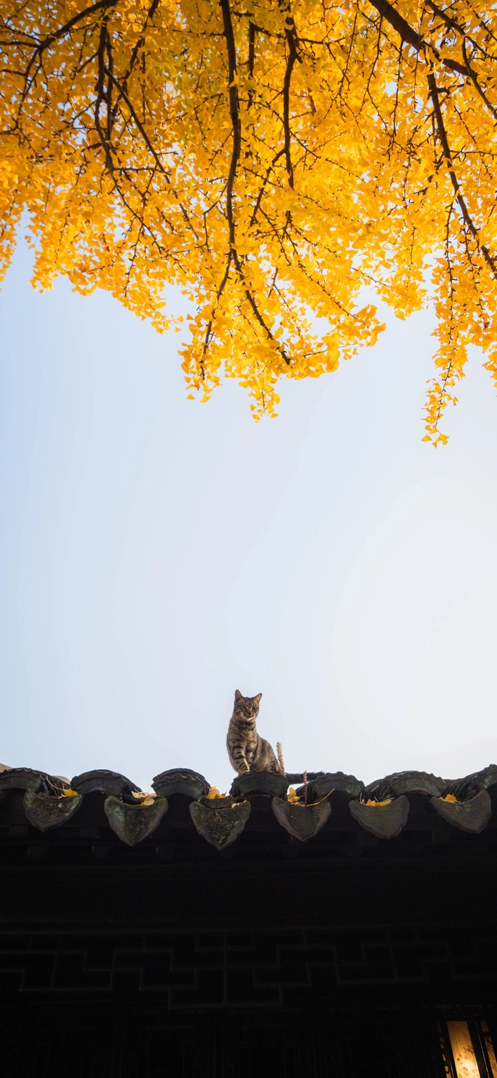 这个头碰头是有多用力呀。 园林里的这颗四百年的银杏总是每年最后黄透的,等它都落了苏州的秋天就正式结束了。而园林里的小猫喜欢在这颗银杏下的屋顶溜达巡视。尤其从高处俯瞰人的仰望不知道会是什么感觉。