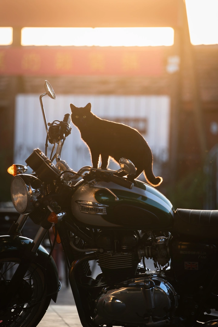 拍摄的时候突然来了一只流浪小黑,直接来一张机车猫片