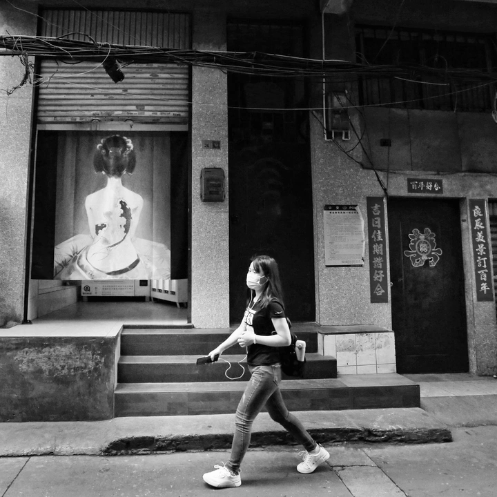 1张老街的每一处,都藏着时光的故事。行人步履匆匆,身后的海报与对联,一边是艺术的新潮,一边是传统的祈愿,新旧在此交织,静静诉说着岁月的流转。