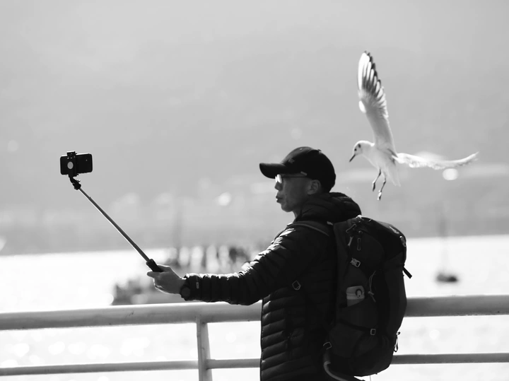 1张举着自拍杆想定格此刻的风,一转头,海鸥把翅膀裁成了画框里的留白。