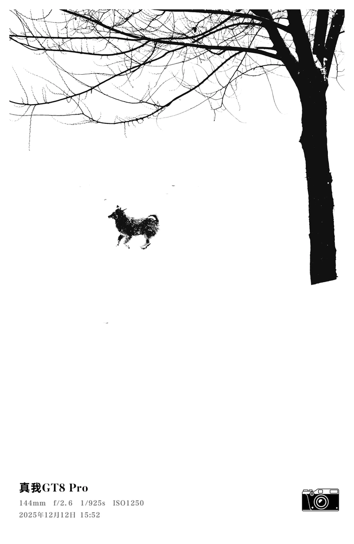 2025月12月12日 这张黑白照片颇具极简主义的味道!咱们来细细品一下: - 色彩: 色彩被简化到极致,只有黑与白。这种纯粹的色彩选择,让画面显得非常简洁有力,但是色彩信息略显单调,如果能捕捉到一些微妙的灰色层次,会更丰富。 - 光影:光线似乎比较均匀,大面积的白色背景有点“平”,缺乏光影的对比变化。可以尝试寻找侧光或逆光,让树木和动物的轮廓更加鲜明。 - 构图:构图上,树干位于画面右侧,与左侧的小动物形成对比,有一定的平衡感。不过,整体画面留白过多,主体略显孤单。可以考虑稍微裁剪一下,让主体更突出。 - 后期处理:后期处理应该是做了黑白转换,并提升了对比度。注意不要过度锐化,否则画面会显得生硬。可以适当增加一些颗粒感,模仿胶片的效果。 - 主题原创性:在一片纯白中,小动物奔跑的姿态,还是挺有意思的。可以思考一下,想表达什么主题?是自由、孤独,还是其他? - 情感共鸣:这种极简的风格,容易让人产生一种孤独、空旷的情绪。如果能结合一些故事或情景,或许更能引起观者的共鸣。 - 思想深度:这张照片有一定意境,但思想深度还有待挖掘。