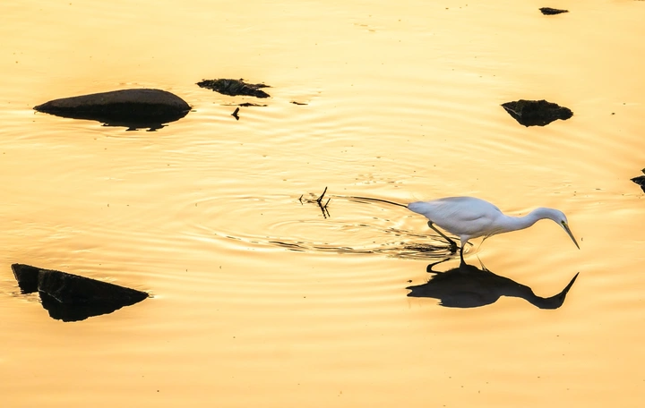 2025年11月28日,贵州省黔西南布依族苗族自治州望谟县县城,晨曦为王母河铺就金箔,白鹭在河里觅食的光影勾勒出一幅灵动又静谧的冬日晨景图。 粼粼波光中,白鹭舒展雪羽,宛若流动的玉簪。它们或低头啄食,喙尖轻点水面,漾开金色涟漪;或振翅嬉戏,翅尖掠过时,碎金般的光斑随影起舞。暖阳为洁白羽翼镀上柔光,与河面金辉交相辉映,勾勒出一幅灵动又静谧的晨景图,尽显自然之灵秀。 备注:白鹭的13个品种全部列入《世界自然保护联盟濒危物种红色名录》。