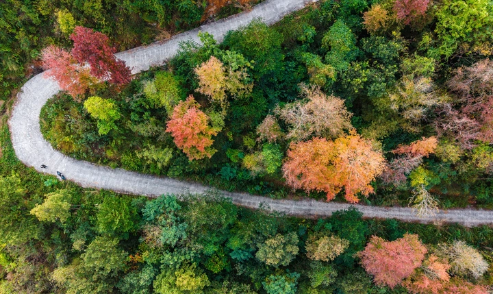 2025年12月7日,贵州省黔西南布依族苗族自治州望谟县王母街道河背村,冬日暖意萦绕,原生枫香林携着艳丽红韵,与各类天然林的苍翠、金黄交相辉映,红橙黄绿各色景致层叠铺展,如大自然挥毫的斑斓画卷。 这里没有冬日的凛冽萧瑟,大雪时节依然气候温润宜人,独特的山林景致生动勾勒出“多彩贵州”独有的暖冬盛景。